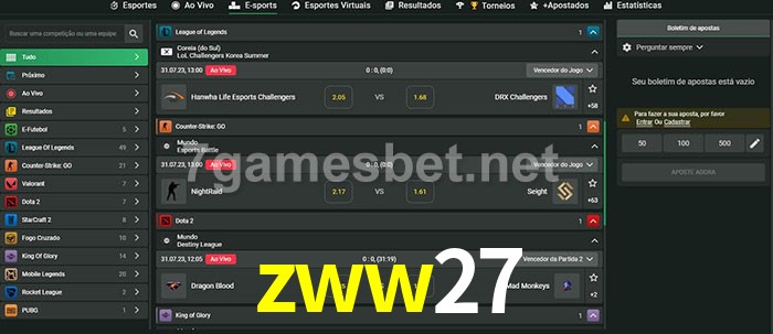 O zww27 oferece uma grande seleção de opções de apostas em e-sports com probabilidades competitivas